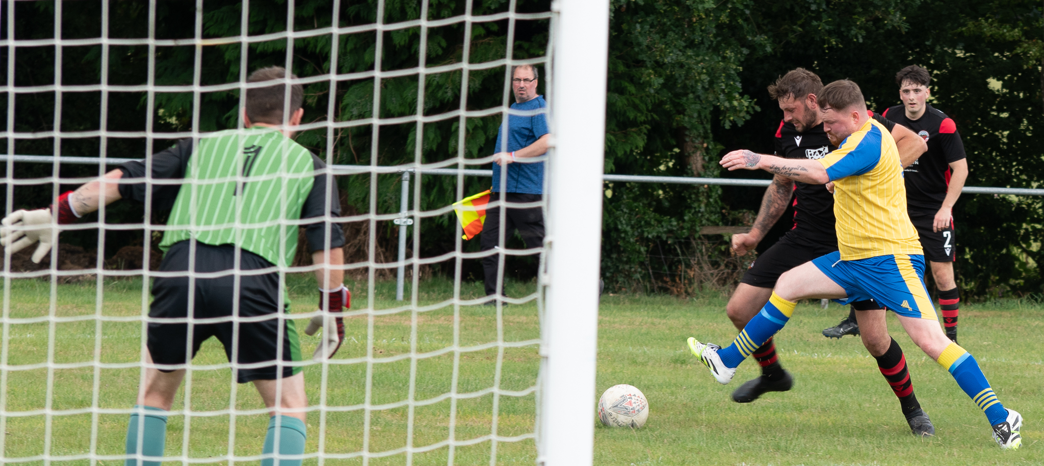 Having never shot a sports event before, I asked Richard if it would be okay to stay on a bit longer and maybe try and capture the players during the match, no problem at all he replied. I spent another hour moving around to practice those action shots that are typical of the ones often seen in newspapers and some arty ones involving the goal keeper’s net.